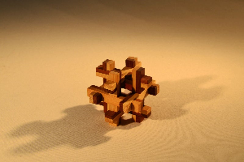 Na diverse foto's gemaakt te hebben van de kandelaar ben ik begonnen met een houten puzzel. De vorm fascineerde mij en hoopte ook op een mooie foto met schaduw. De linker foto is gemaakt met 2 continu lichten precies tegen over elkaar zodat er twee keer een schaduw ontstond, de rechter met een continu licht voor een wat hardere enkele schaduw.